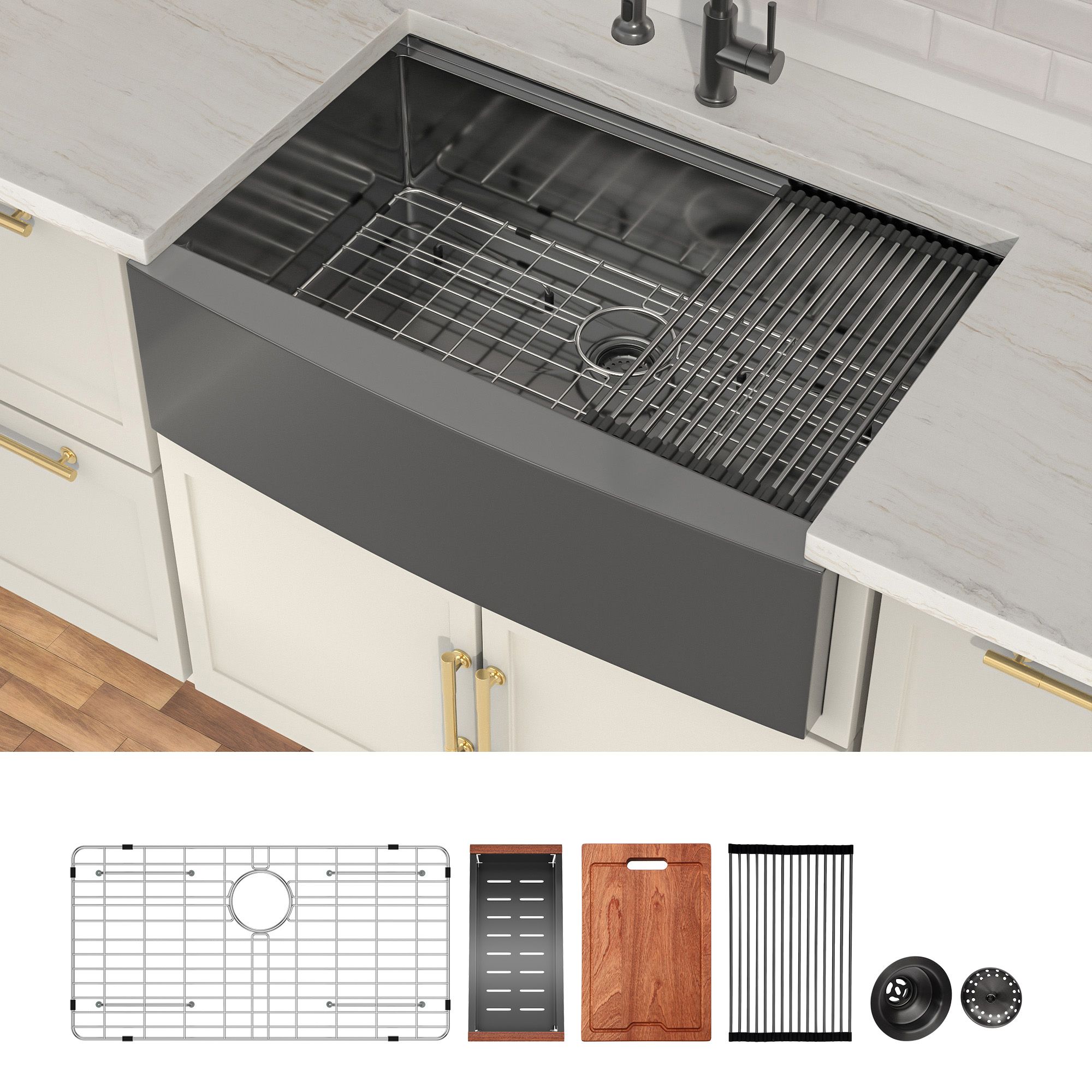 Farmhouse Sink Kitchen Sink Apron Front Single Bowl Workstation Stainless Steel Sink