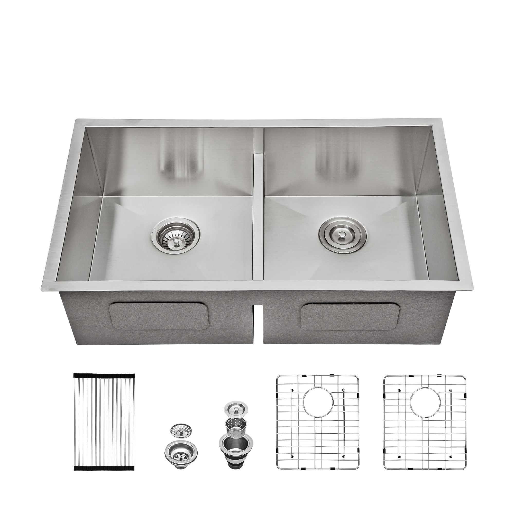 Lordear 33/28 Inch Undermount Sink Double Bowl 16 Gauge Stainless Steel Low Divide Kitchen Sink Lordear 33/28 Inch Undermount Sink Double Bowl 16 Gauge Stainless Steel Low Divide Kitchen Sink Lordear 33/28 Inch Undermount Sink Double Bowl 16 Gauge Stainless Steel Low Divide Kitchen Sink