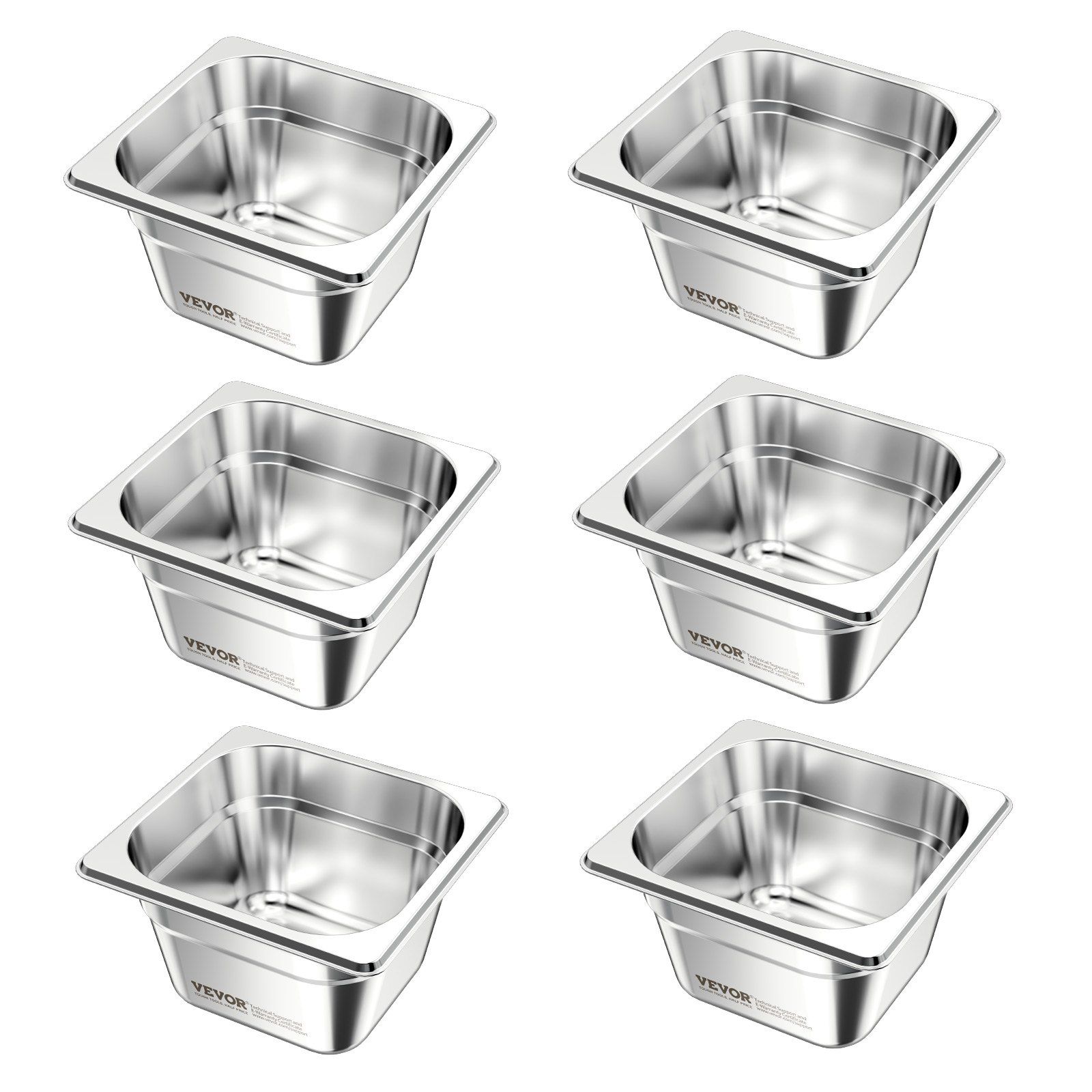 VEVOR 6 Pack Stainless Steam Hotel Pans, 1/6 Size Table Steam Pan, 4 Inch Deep VEVOR 6 Pack Stainless Steam Hotel Pans, 1/6 Size Table Steam Pan, 4 Inch Deep VEVOR 6 Pack Stainless Steam Hotel Pans, 1/6 Size Table Steam Pan, 4 Inch Deep