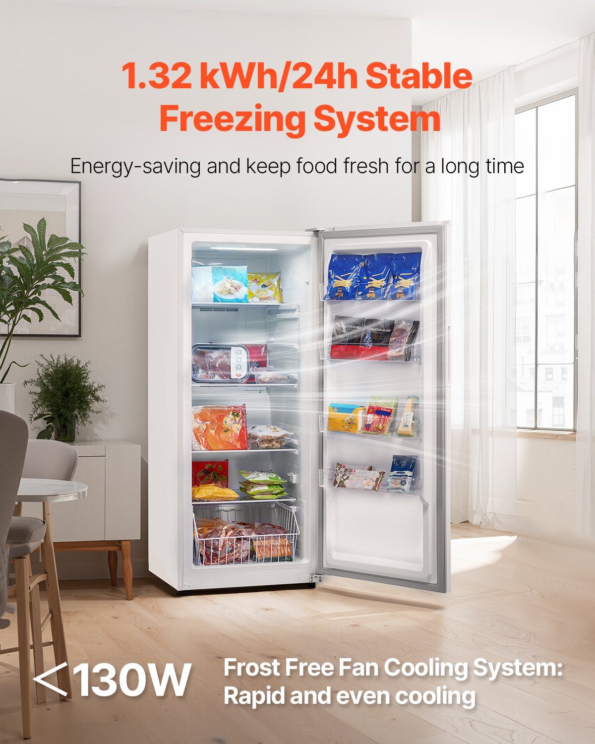 This stand-up freezer is suitable for use in home kitchens, offices, basements, RVs, and more.